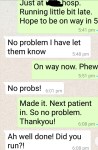 Today I texted Im late. on way.