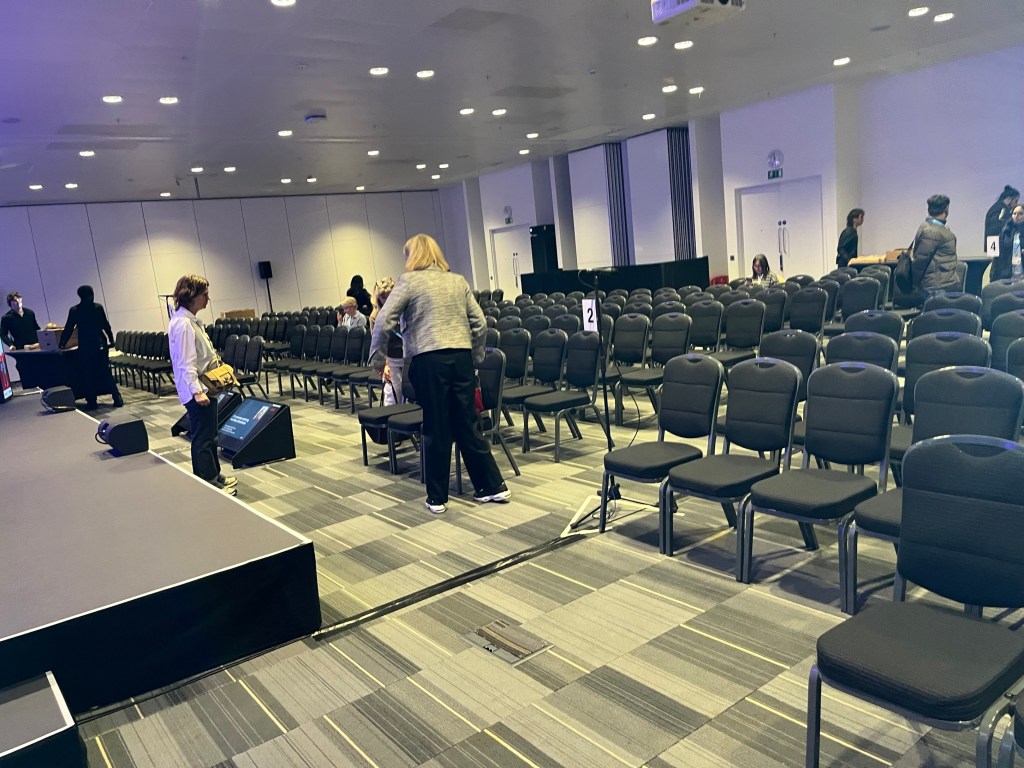 My ‘minders’ met me and coffees poured phew. However many times urology warns gains caffeine I’ve yet to discover one who follows the advice. We rehearsed our panel session. Mic’d up and off we went.